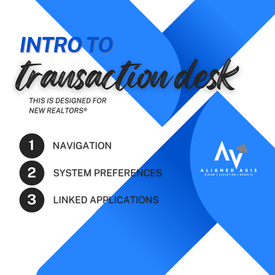 Designed for NEW REALTORS® in mind, student’s will navigate the agent dashboard and customize their settings in Transaction Desk during this one (1) hour course.